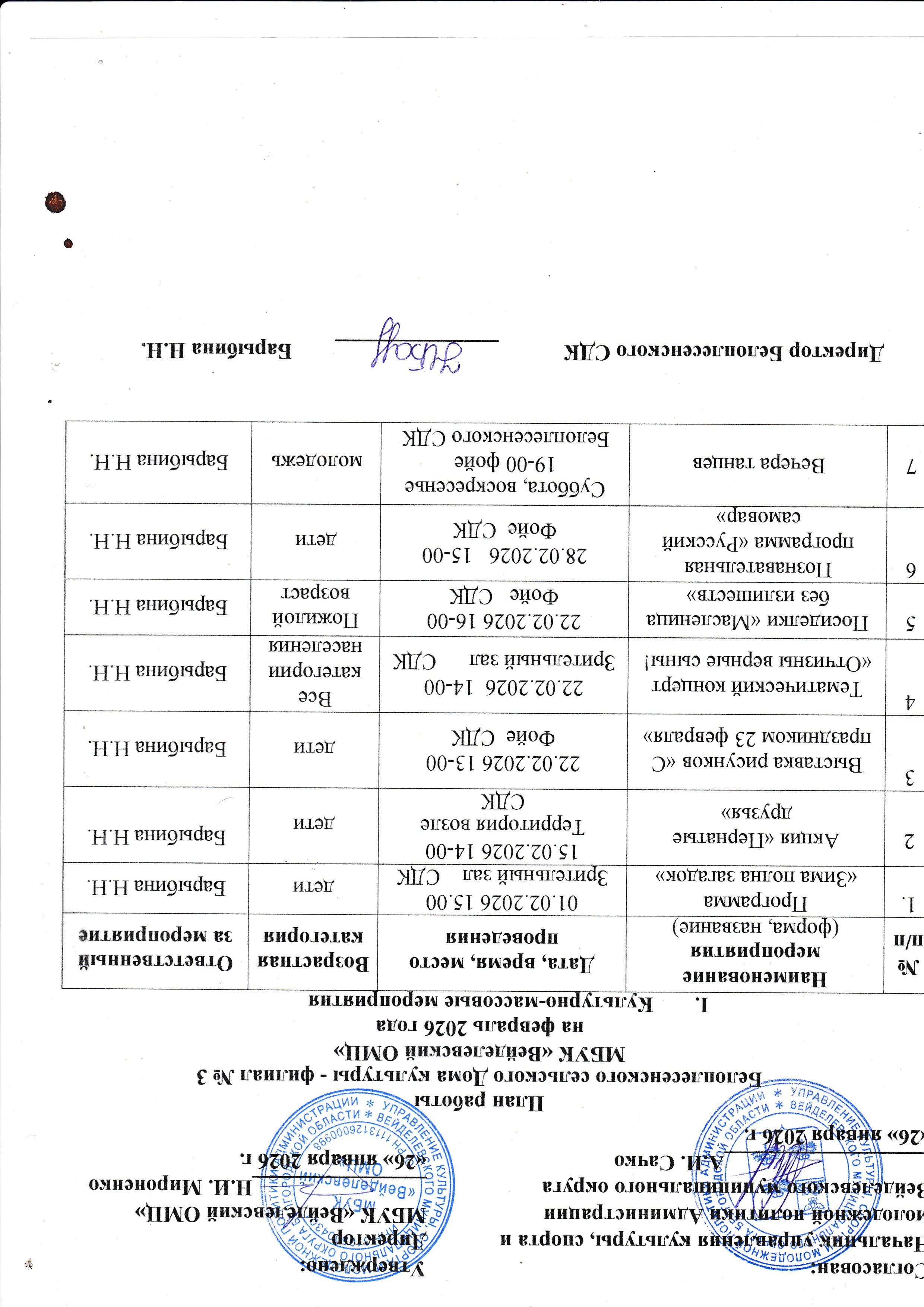 . План работы на февраль 2026 год