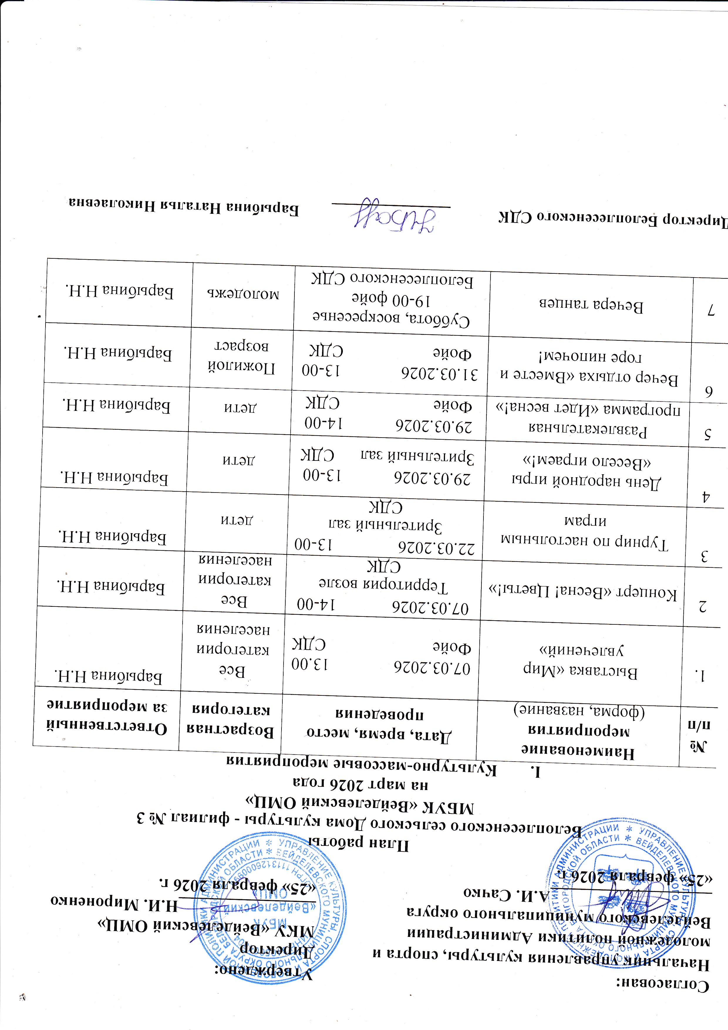 . План работы на март 2026 год